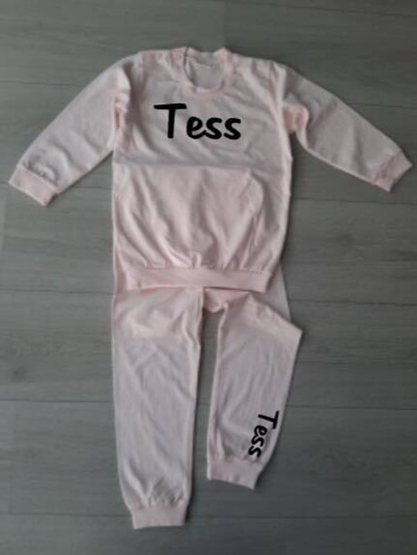 Een pyjama is ook onmisbaar in een kinder garderobe en wat is nog leuker als de naam van het kindje erop staat.